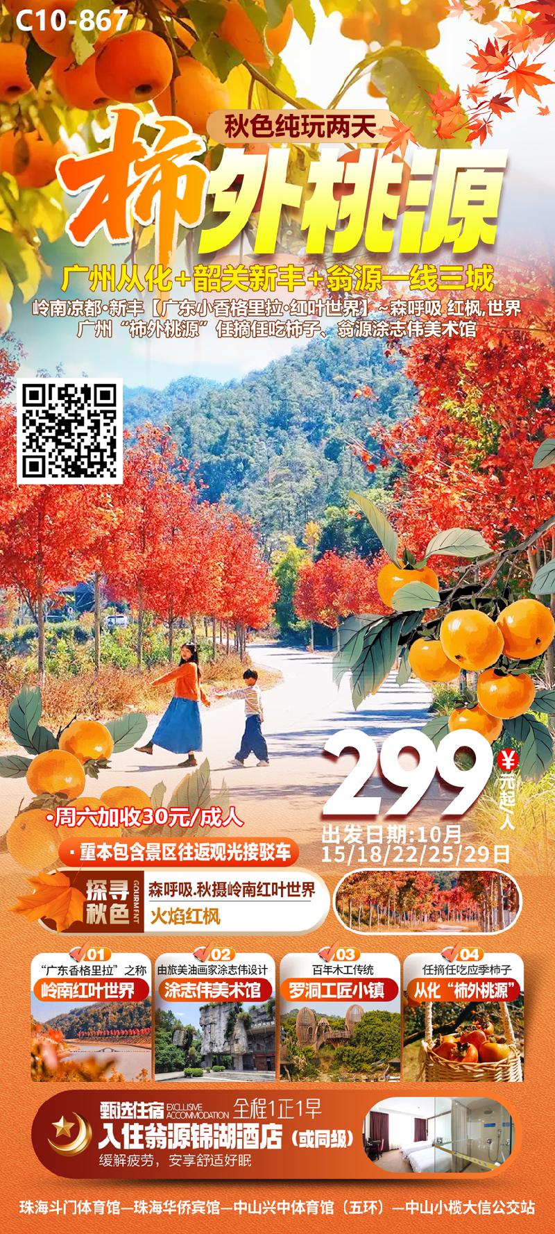 ★森呼吸.秋摄岭南红叶世界-火焰红枫·重本包含景区往返观光接驳车★从化“柿外桃源”任摘任吃应季柿子